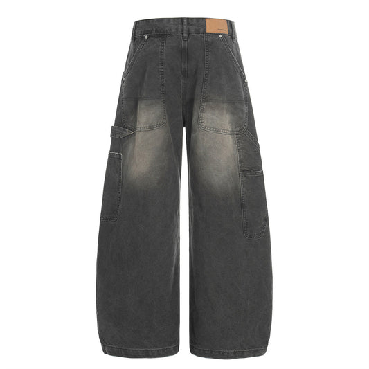Retro Punk Washed Faded Wide-Leg Distressed Denim Scimitar Pants