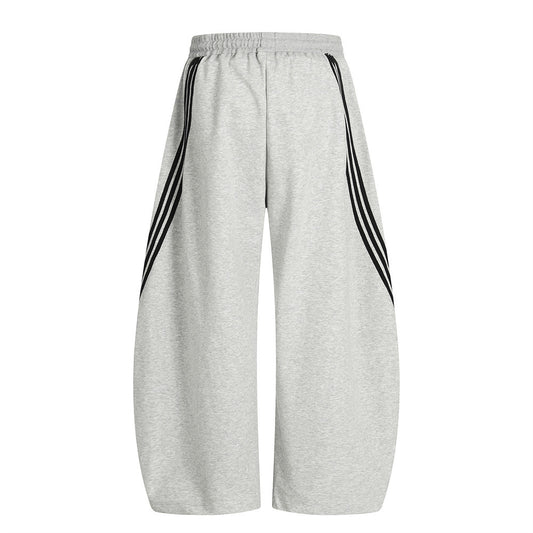 Patchwork Three-Stripe Wide-Leg Scimitar Sports Pants